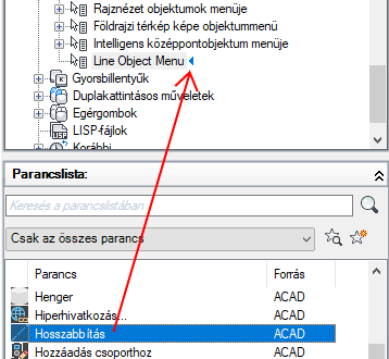 Ha az aktív parancshoz kapcsolódó menüelemeket szeretné beilleszteni egy helyi menübe, akkor adja meg a COMMAND_parancsnév álnevet. A parancsnév szövege bármilyen érvényes parancs neve lehet. Ha például azt szeretné, hogy a helyi menü elemei akkor jelenjenek meg, amikor a VONAL parancsot használja, adja meg a COMMAND_VONAL álnevet.