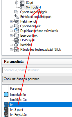 A Parancslista területről húzza a helyi menühöz hozzáadni kívánt parancsot az <fájlnév> testreszabási beállításai ablaktáblára.