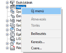 A Testreszabás lap <fájlnév> testreszabási beállításai ablaktábláján kattintson a jobb gombbal a Menük csomópontra. Kattintson az Új menü menüpontra.