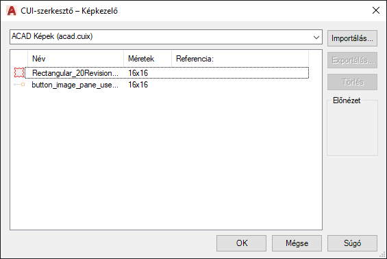 A parancsok egyéni képei importálhatók és exportálhatók.