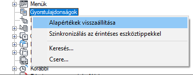 A Gyorstulajdonságok alapértelmezett beállításainak visszaállítása