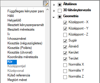 A Tulajdonságok ablaktáblán jelölje be azoknak az általános tulajdonságoknak a jelölőnégyzetét, amelyeket minden objektumtípus esetén meg kíván jeleníteni a Gyorstulajdonságok palettán.