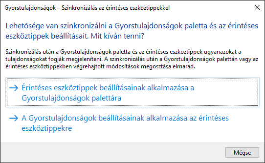 A Gyorstulajdonságok és az érintéses eszköztippek szinkronizálása