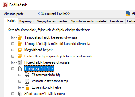 Tipp: Létrehozhat két különböző profilt, amelyeket a fő és a vállalati CUIx-fájlok közötti váltásra használhat. Az egyik profil normál konfigurációjú CUIx-fájlokkal fog rendelkezni, amelyeket a rajzolói használnak, a másik pedig a megcserélt fő és vállalati CUIx-fájlokkal rendelkezik, módosíthatóvá téve így a vállalati testreszabási fájlt.