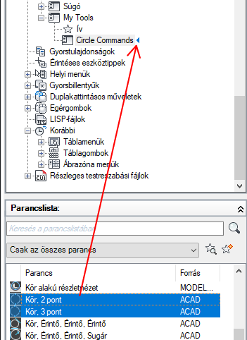 A Parancslista területről húzza az almenühöz hozzáadni kívánt parancsot a