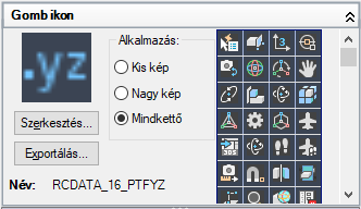 A Testreszabás lap Parancslista ablaktábláján vagy a <fájlnév> testreszabási beállításai ablaktáblán válasszon ki egy parancsot a Gomb ikon ablaktábla megjelenítéséhez.