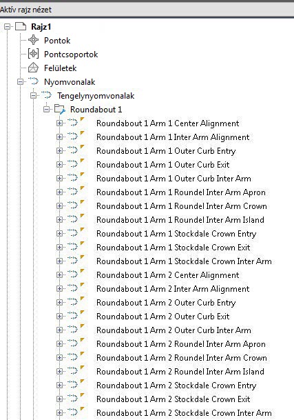 A körforgalom-objektumok a létrehozásuk során elnevezett körforgalmakként jelennek meg.