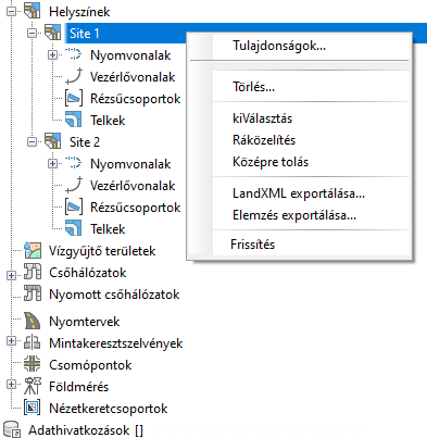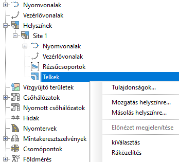Ezeket a tulajdonságokat úgy érheti el, ha a jobb gombbal a Telkek gyűjteményre kattint az adott nevű helyszíngyűjtemény alatt.