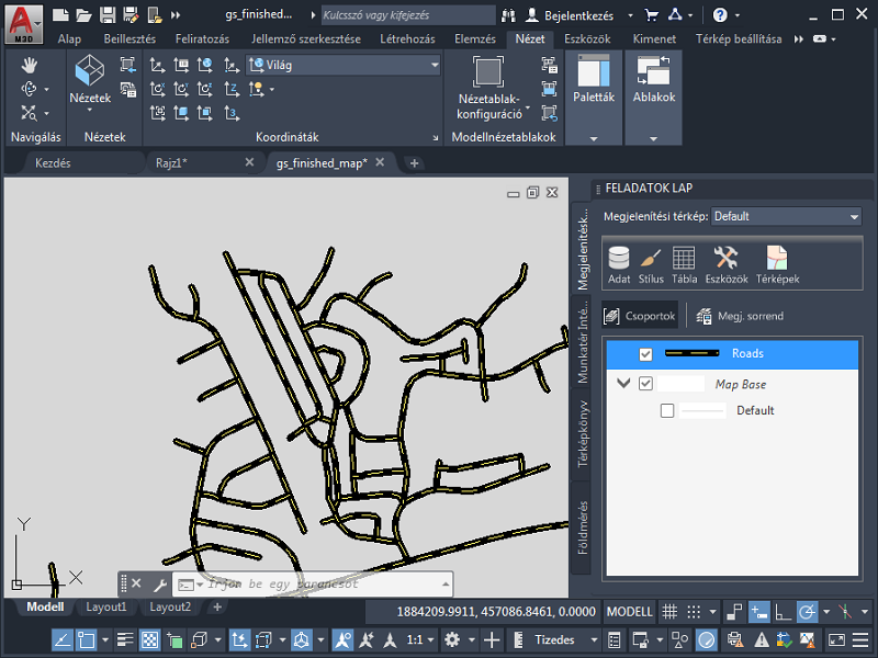 Mentés gombra. Figyelje meg, hogy a térképek .dwg kiterjesztésűek, épp úgy, mint az AutoCAD rajzok. Mindkét fájltípus ugyanarra az alapfájlformátumra épül.