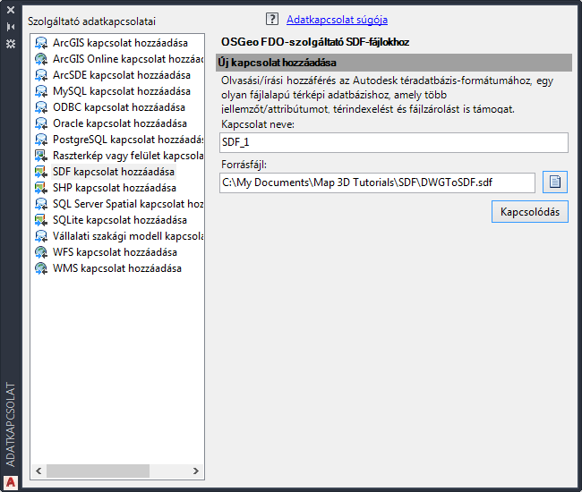 Kapcsolódjon a korábban létrehozott SDF-fájlhoz.