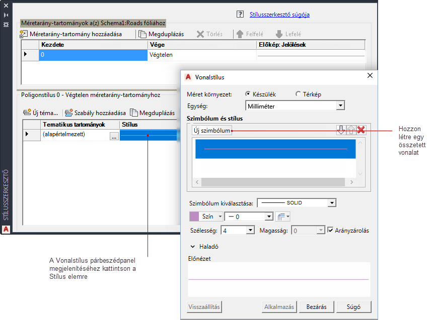 Adjon meg egy másik méretarány-tartományt, és határozzon meg hozzá egy tömör vonalstílust.