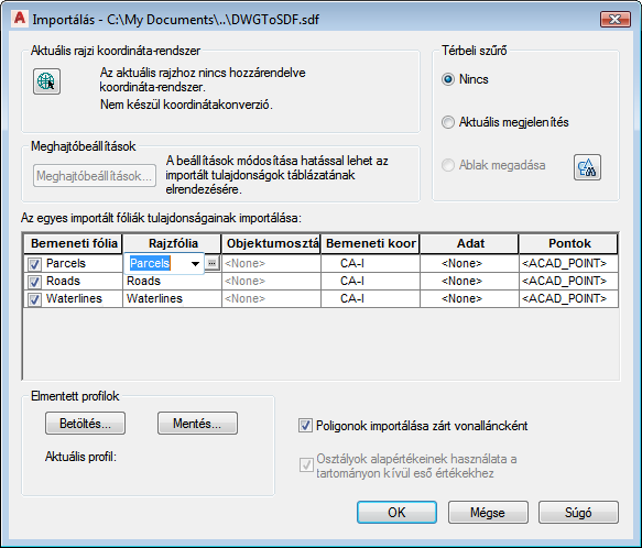 A térképek mentése DWG formátumban történik. Megnyithat közvetlenül egy AutoCAD-rajzot, vagy csatolhat rajzokat és lekérdezheti csak a kívánt objektumokat.