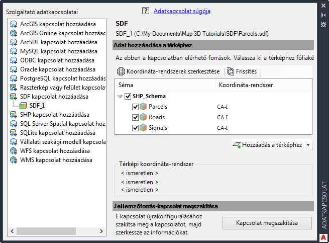 - Az Adatkapcsolat ablakban tegye a következőket: