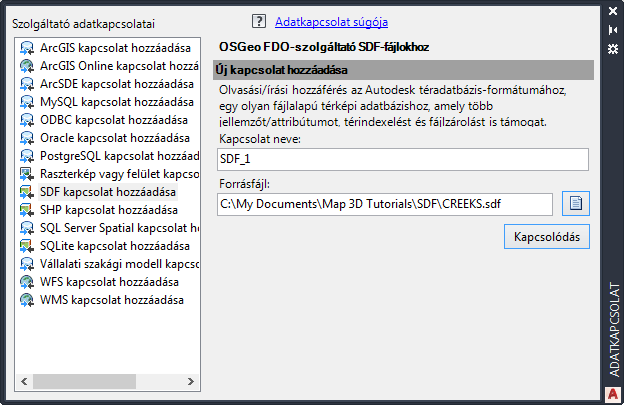 - A Szolgáltató adatkapcsolatai területen kattintson a SDF kapcsolat hozzáadása parancsra.