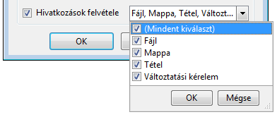 Ha a kijelölés egy mappára mutató hivatkozást tartalmaz, a célmappa teljes tartalma meg fog jelenni a fájlgyűjtő párbeszédpanelen. A hozzáadott adatok körét az határozza meg, hogy hogyan történik az adatok begyűjtése a célmappába. Ha a kiválasztási halmaz tartalmaz egy hivatkozást egy mappára, akkor annak adatai, illetve a gyermekmappák adatai is hozzáadásra kerülnek. A célfájl minden, az adatokra a párbeszédpanelen megadott kapcsolati beállítást (Függő objektumokkal együtt, Szülőkkel együtt stb.) betart.