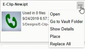 Megnyitja a kiválasztott alkatrészt a Vaultban. |
