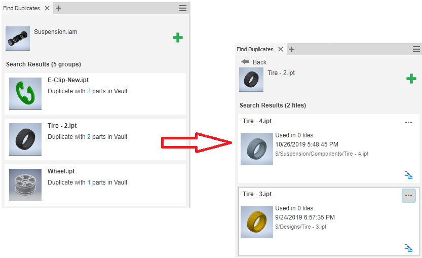 Megtudhatja, hogyan kereshet többször előforduló alkatrészeket az Inventorban.