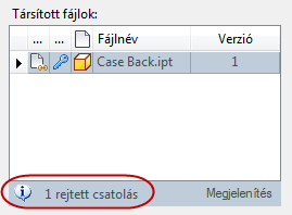 A program az összes másodlagos csatolást elrejti. A rejtett hivatkozások száma a Társított fájlok ablak bal alsó részében jelenik meg.