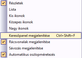 Az új oszlopok támogatják az Előnézeti kép nézetet. A rácson belül is végezhet keresést. E keresési sor eléréséhez kattintson a jobb gombbal a rácsra, majd válassza a Keresőpanel megjelenítése lehetőséget.