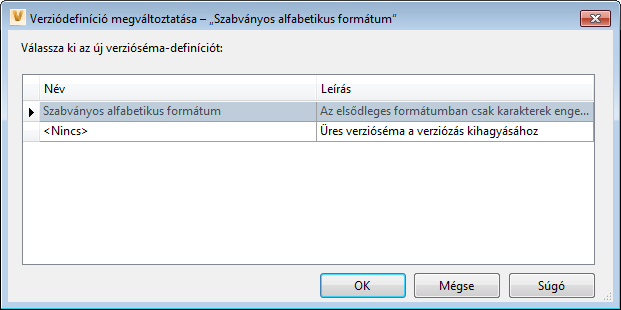 - A Verzióséma-definíció módosítása párbeszédpanelen válassza ki azon új verziósémát, amelyet hozzá kíván rendelni a kiválasztott fájlhoz. Kattintson az OK gombra.