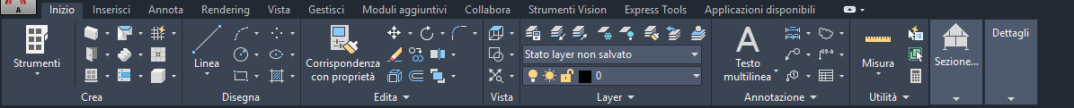 Nella scheda Inizio sono disponibili i comandi più utilizzati nel software: strumenti di oggetti e di disegno di base, nonché utilità di impiego frequente quali strumenti di modifica, layer e annotazione di base. Utilizzare la scheda Inizio come punto di partenza in un nuovo disegno.