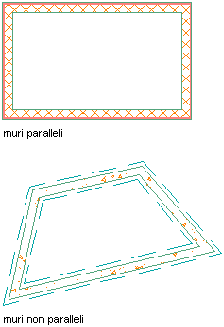 Per riposizionare un muro mediante il grip Posizione, attenersi alla procedura indicata di seguito. Esistono due casi da considerare quando si utilizza il grip di posizionamento: segmenti di muro paralleli e segmenti di muro non paralleli.
