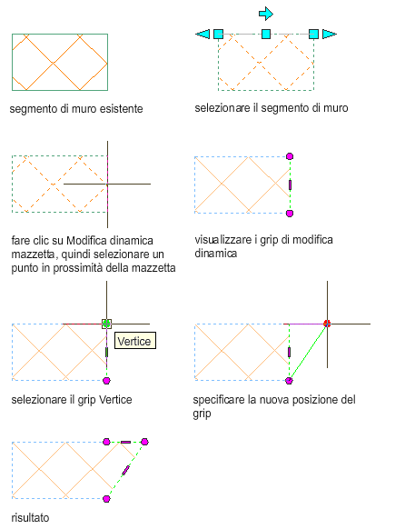 Per modificare un componente muro con i grip Vertice, attenersi alla procedura indicata di seguito.