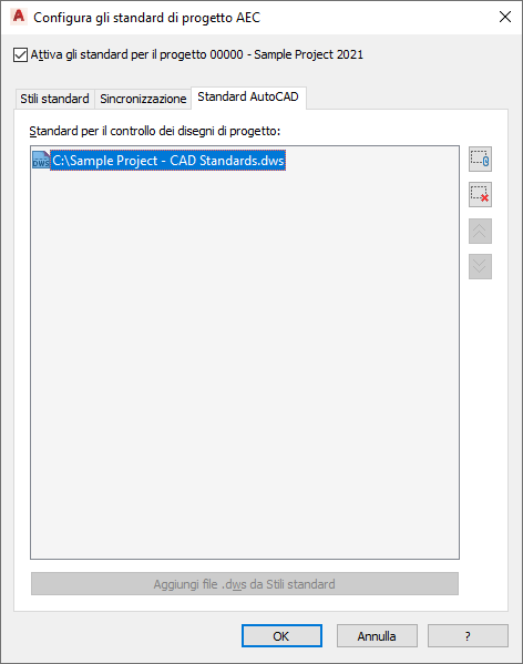 Per impostare standard AutoCAD in un progetto, attenersi alla procedura indicata di seguito.