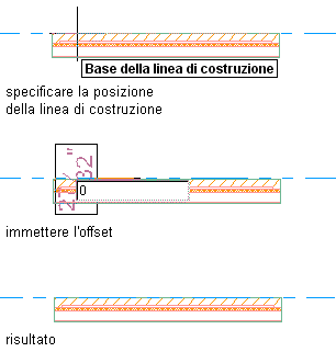 Disegno di una linea di costruzione con offset zero basata su un segmento di muro retto