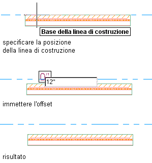 Disegno di una linea di costruzione con offset specificato basata su un segmento di muro retto