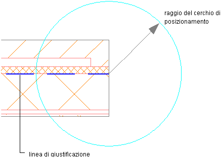 Posizionamento di muri con linea di giustificazione che interseca il cerchio di posizionamento