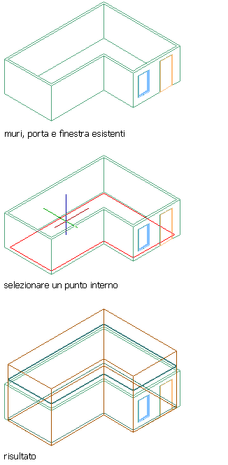 Muri (a sinistra) e vano generati da contorni di muro (a destra)