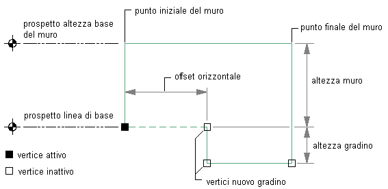 Modifica della linea del pavimento di un muro con l'aggiunta di un gradino