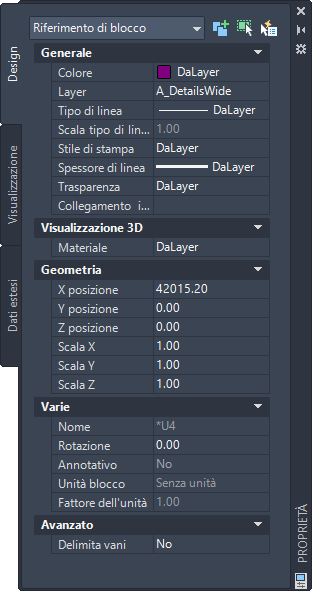 Una volta inserito un componente di dettaglio in un disegno, è possibile modificare il componente con gli strumenti disponibili nel gruppo Edita della scheda Inizio oppure con l'opzione Strumenti modifica AEC disponibile nel menu di scelta rapida del componente di dettaglio. L'utilizzo di questi strumenti su componenti di dettaglio basati su blocchi determina definizioni di blocchi univoche per gli inserti modificati, pertanto le modifiche non influiscono sugli altri inserti dello stesso blocco in posizioni diverse. Tuttavia, se si sceglie l'opzione Modifica diretta blocco per modificare una definizione di blocco utilizzata in più punti, per creare una definizione univoca del blocco inserito che si desidera modificare, è possibile scegliere l'opzione Copia definizione blocco e assegna dello stesso menu.