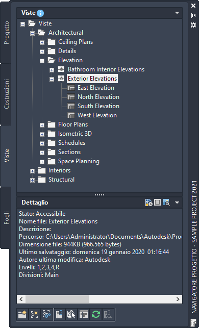 Viste prospetto esterne dello spazio modello nel Navigatore progetto