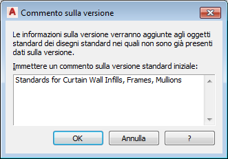 Se al progetto è stato aggiunto un disegno con standard che risiede nella cartella del progetto, agli stili e alle impostazioni di visualizzazione standard vengono automaticamente aggiunte informazioni sulla versione iniziale. Se il disegno con standard risiede fuori della cartella del progetto e non è specificata alcuna versione, è necessario indicarne una.