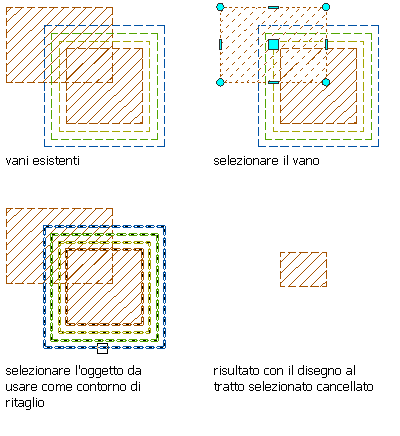 Le proprietà di visualizzazione dei contorni del primo vano selezionato vengono applicate al contorno di intersezione risultante. Se ad esempio il contorno netto del primo vano è rosso con uno spessore di linea di 0,18 mm, il contorno netto del vano risultante sarà rosso con uno spessore di linea di 0,18 mm.