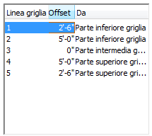 Per aggiungere manualmente linee di griglia e specificare un offset per ognuna di esse quando occorre creare una particolare griglia che non si adatta ad altri tipi di divisioni, attenersi alla procedura indicata di seguito. È anche possibile partire da una griglia con celle di quota fissa o con un numero fisso di celle per poi adattare manualmente le linee di griglia in base alle proprie esigenze.