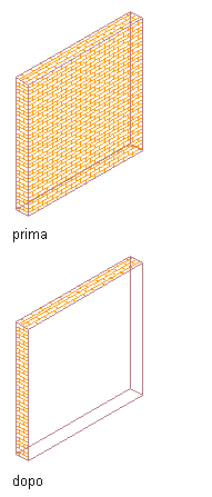| Sostituire soltanto la faccia selezionata dell'oggetto | In Facce, selezionare Soltanto la faccia <direzione> selezionata. Ad esempio, per applicare una sostituzione di tratteggio di superficie soltanto alla faccia anteriore selezionata di un muro, si deve selezionare Soltanto la faccia anteriore selezionata. |
