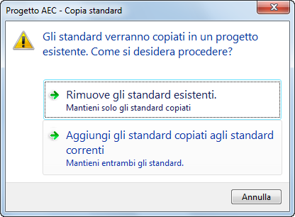 | Sovrascrivere gli standard del progetto esistente con quelli del progetto copiato |