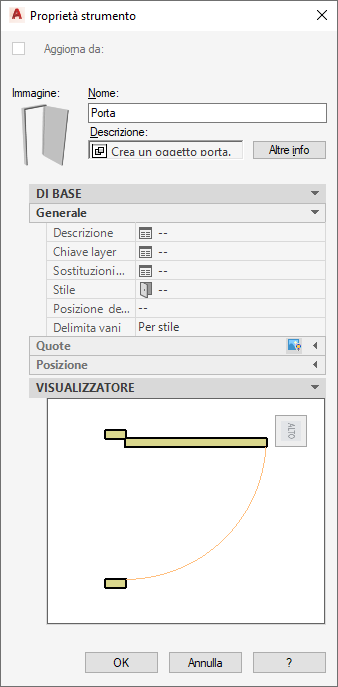 Visualizzatore oggetti delle proprietà dello strumento
