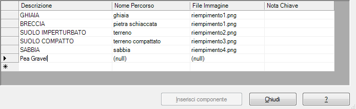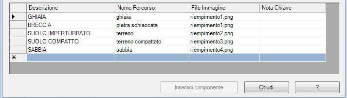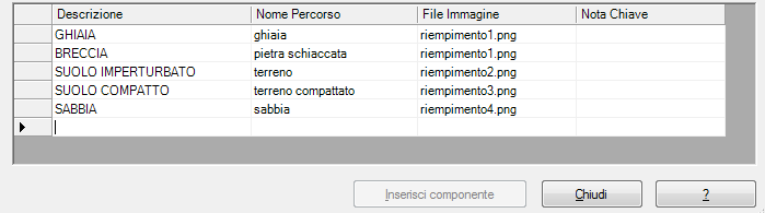Per aggiungere una riga alla tabella delle dimensioni di un componente selezionato in Gestione componenti di dettaglio, attenersi alla procedura indicata di seguito.