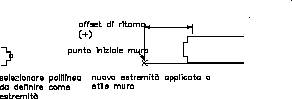 Un valore di offset positivo sposta l'estremità dal punto iniziale del muro nella direzione X positiva.