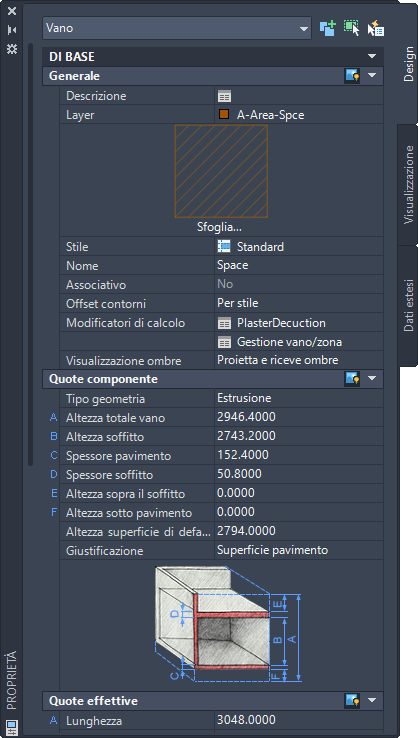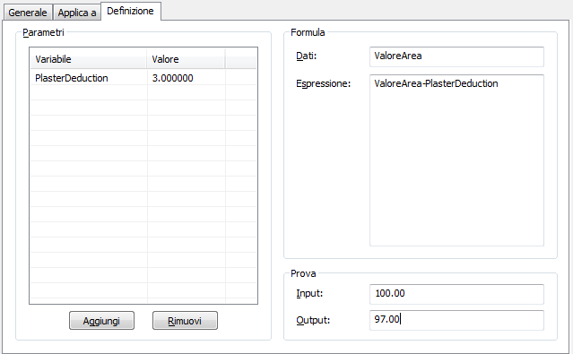 - Definire una formula per il calcolo del valore dell'area base o del perimetro base del vano.