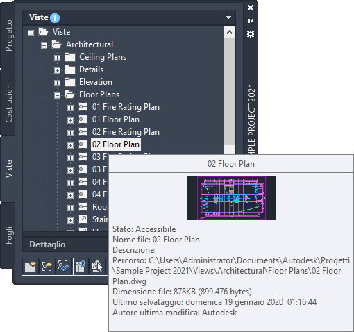 Visualizzare il riquadro di anteprima o di dettaglio nella parte inferiore del Navigatore progetto. Scegliere Riquadro di anteprima/dettagli.