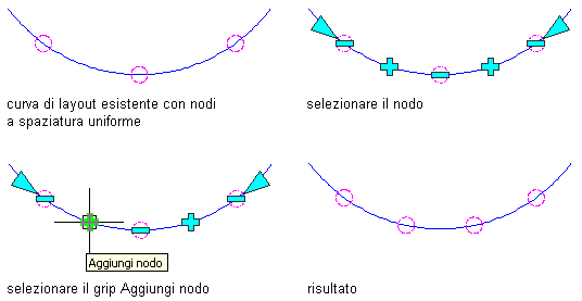 Aggiunta di un nodo ad una curva di layout mediante i grip