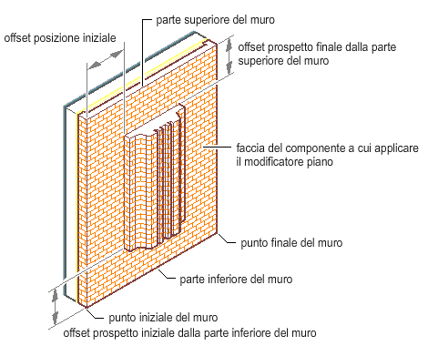 Fogli di lavoro. Queste impostazioni indicano il punto iniziale del modificatore lungo la lunghezza del muro. Per specificare un offset nella direzione inversa del muro, immettere un valore negativo.