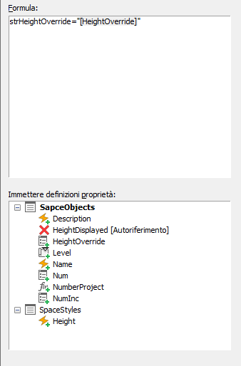 È stata modificata la definizione di proprietà di formula dell'altezza nel foglio di lavoro Definizione proprietà formula