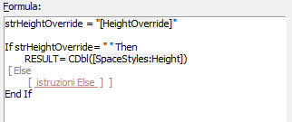 È possibile salvare una formula contenente campi rossi e grigi per la modifica successiva, tuttavia verrà visualizzata una finestra di dialogo di avvertimento, in quanto la formula non sarà valutata correttamente. Per ulteriori informazioni sull'utilizzo corretto del codice VBScript nella formula, accedere alla Guida in linea dal codice stesso.
