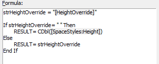 Dato che contiene la parola RESULT, questa formula viene valutata come funzione anziché come espressione. Il valore della proprietà della formula è l'ultimo valore assegnato a RESULT. Il risultato di questa formula valida è Vaulted.